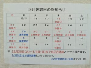 12月のイベントカレンダー 2025年12月2日 最終更新日時 : 2025年12月2日 kzn_user_rq_kamicho-seikotsu 今年最後のイベントカレンダーです。 ご予約お待ちしております。