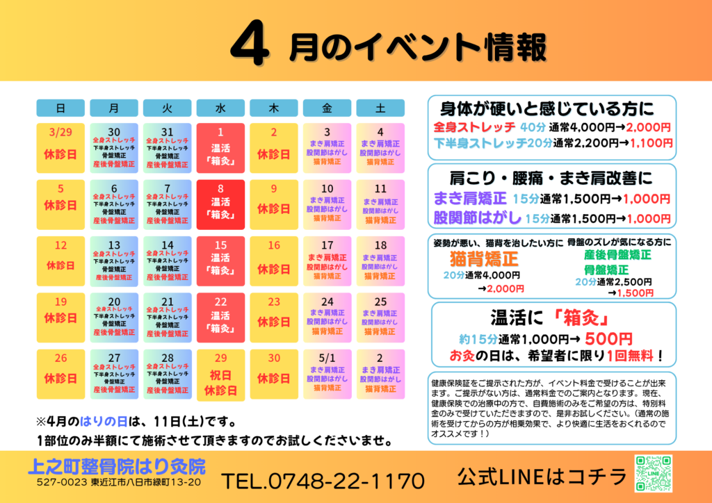など、人気コースの日を増やして皆様のご来院をおまちしております。